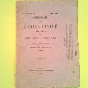 COMMENTARIO CODICE CIVILE TRATTATO SERVITÙ PREDIALI VOL VI FASC 75 1878