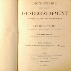 DICTIONNAIRE DES DROITS D’ENREGISTREMENT TOME CINQUIEME