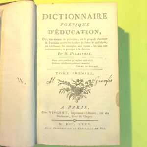 DICTIONNAIRE POETIQUE D’EDUCATION TOME PREMIER