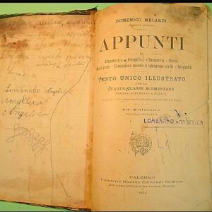 Condizioni: Discrete – La copertina è staccata dal dorso – La legatura delle pagine è allentata – Alcune pagine sono staccate dal dorso -Alcune scritte a matita e a penna