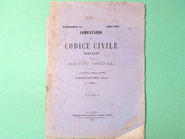 COMMENTARIO DEL CODICE CIVILE TRATTATO DELLE SERVITU’ PREDIALI VOLUME VI FASCICOLO 76