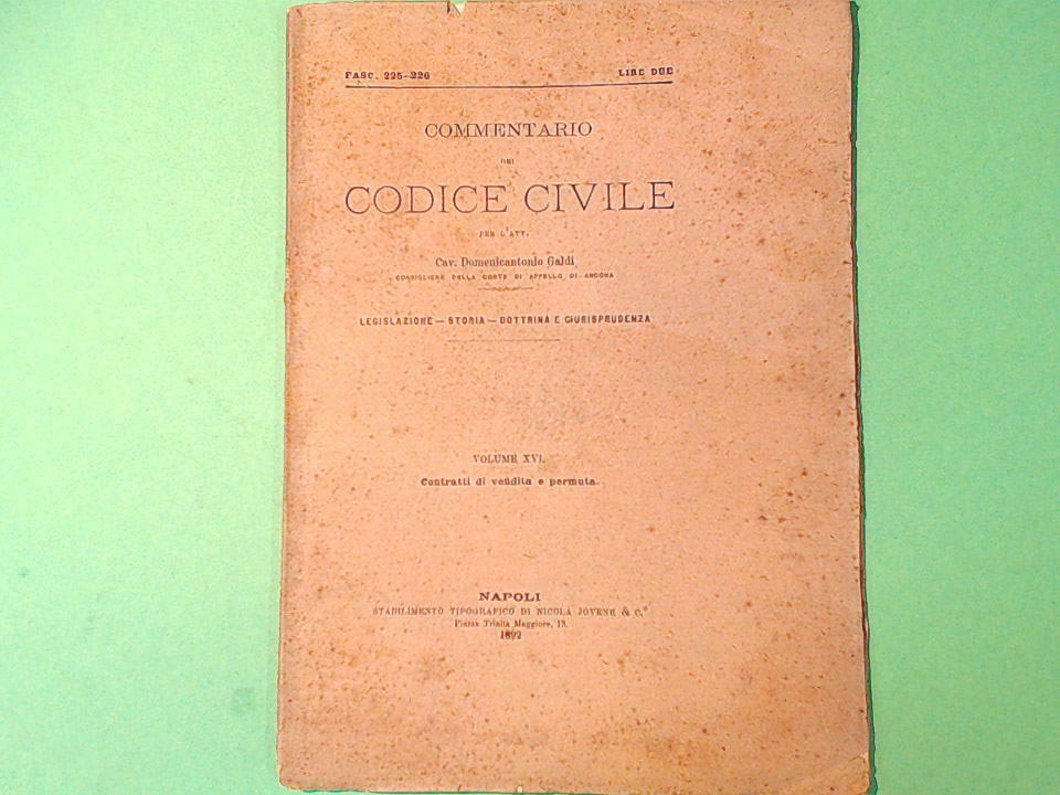 COMMENTARIO DEL CODICE CIVILE VOL XVI FASC 225-226 GALDI JOVENE 1892