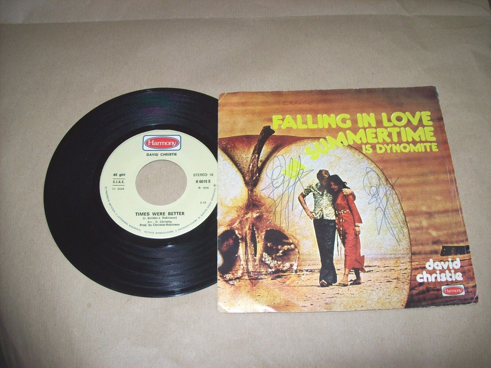 Sigle a penna su disco e copertina
