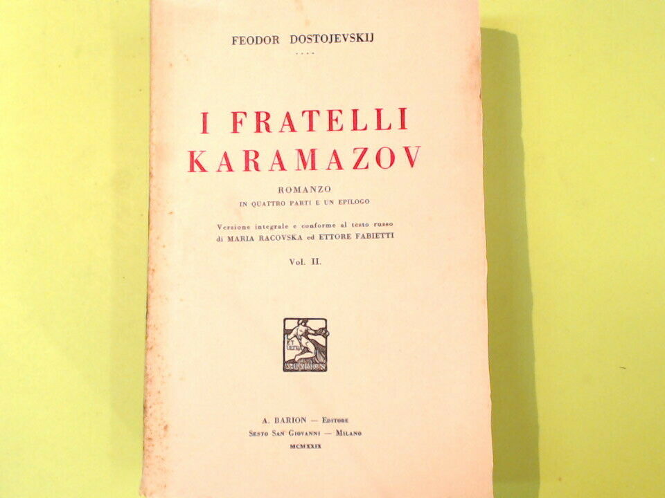 R. L. posizione negozio n. 1135FEODOR DOSTOJEVSKIJ I FRATELLI KARAMAZOV VOLUME SECONDO