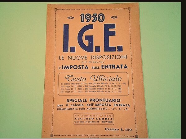 IGE LE NUOVE DISPOSIZIONI CHE REGOLANO L’IMPOSTA SULL’ENTRATA 1950