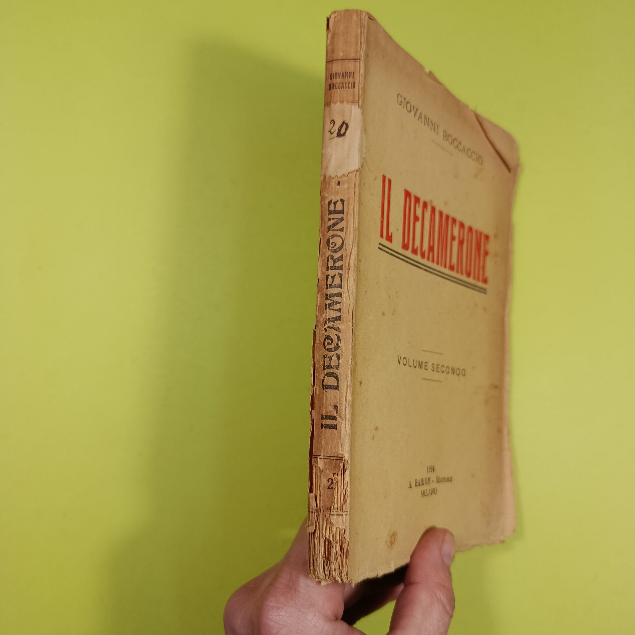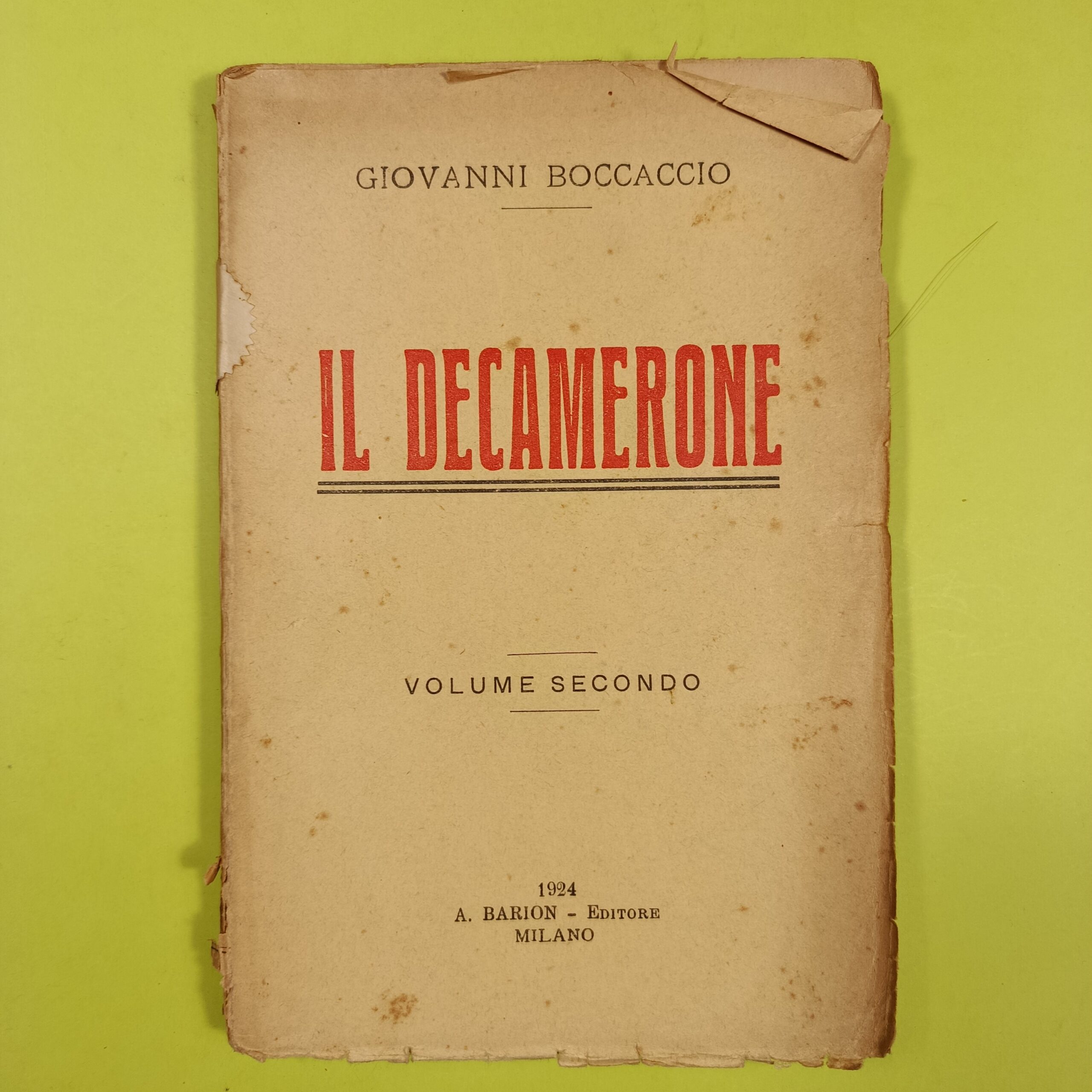 Condizioni: Buone, Il dorso è lacerato all’estremità inferiore – L’interno è in buono stato – Brunitura sul bordo delle pagine