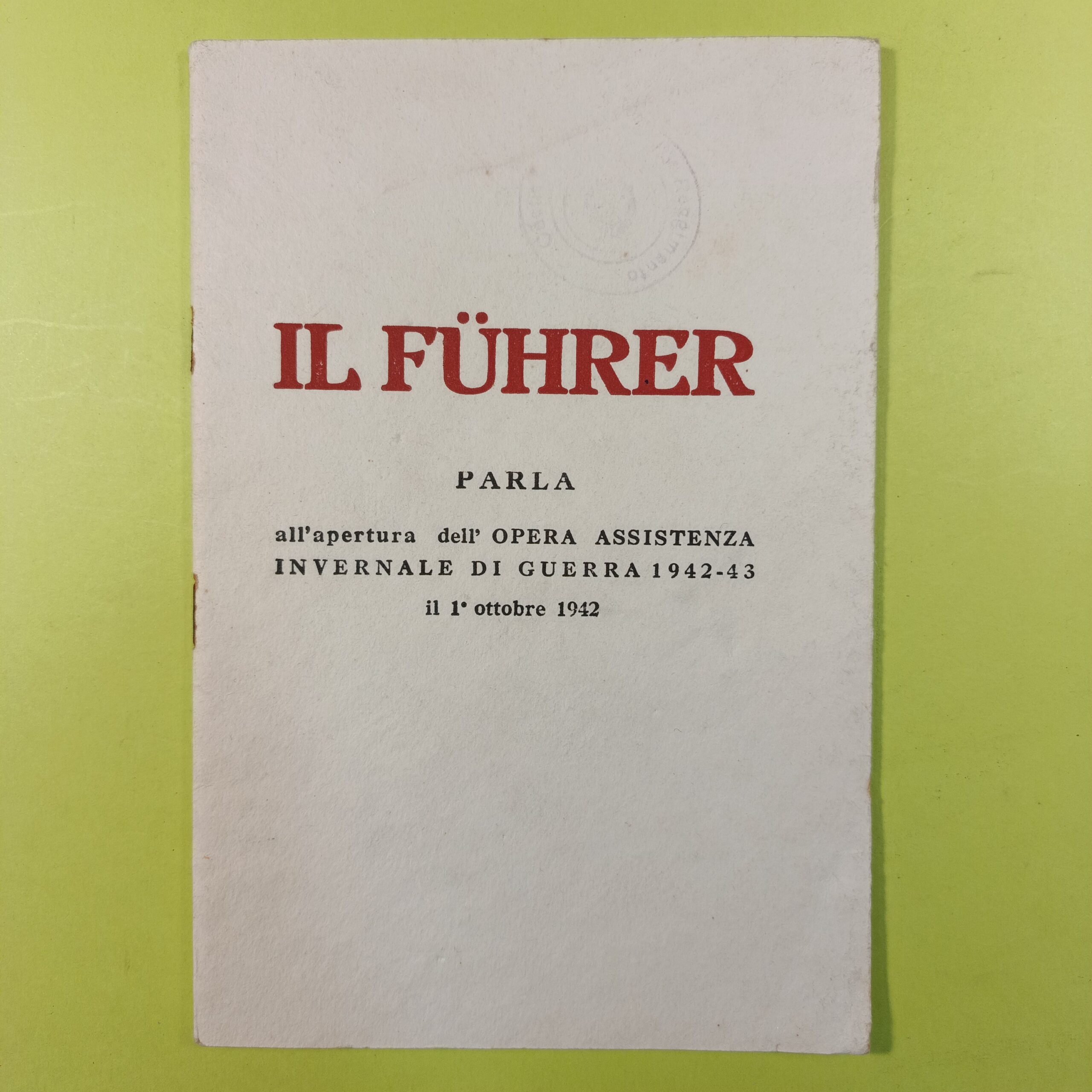 PARLA ALL’OPERA ASSISTENZA INVERNALE DI GUERRA 1942-43 IL 1° OTTOBRE 1942