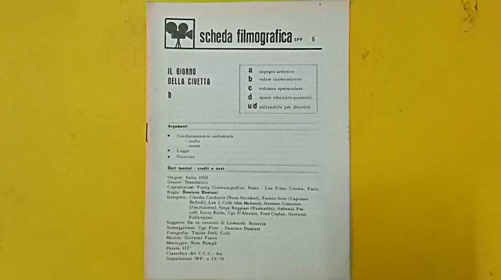 R.L. Posizione negozio n. 1026 MARZO 1970 N. 6 SCHEDA FILMOGRAFICASPF IL GIORNO DELLA CIVETTA