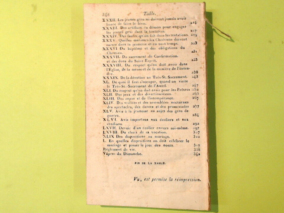 R. L. posizione negozio n. 88INSTRUCTION CHRETIENNES POUR LES JEUNES GENS