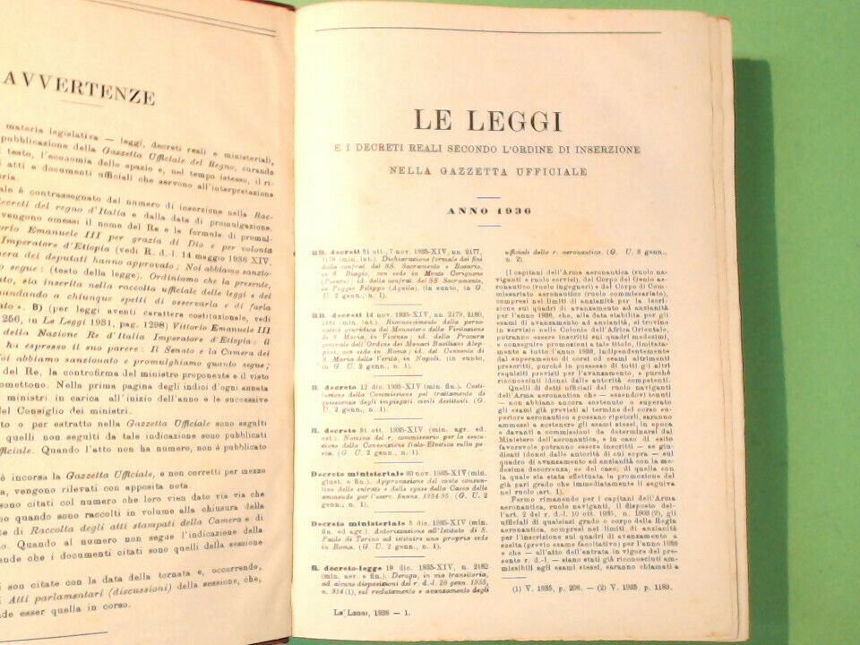 LE LEGGI E I DECRETI REALI RACCOLTA COMPLETA ANNO 1936