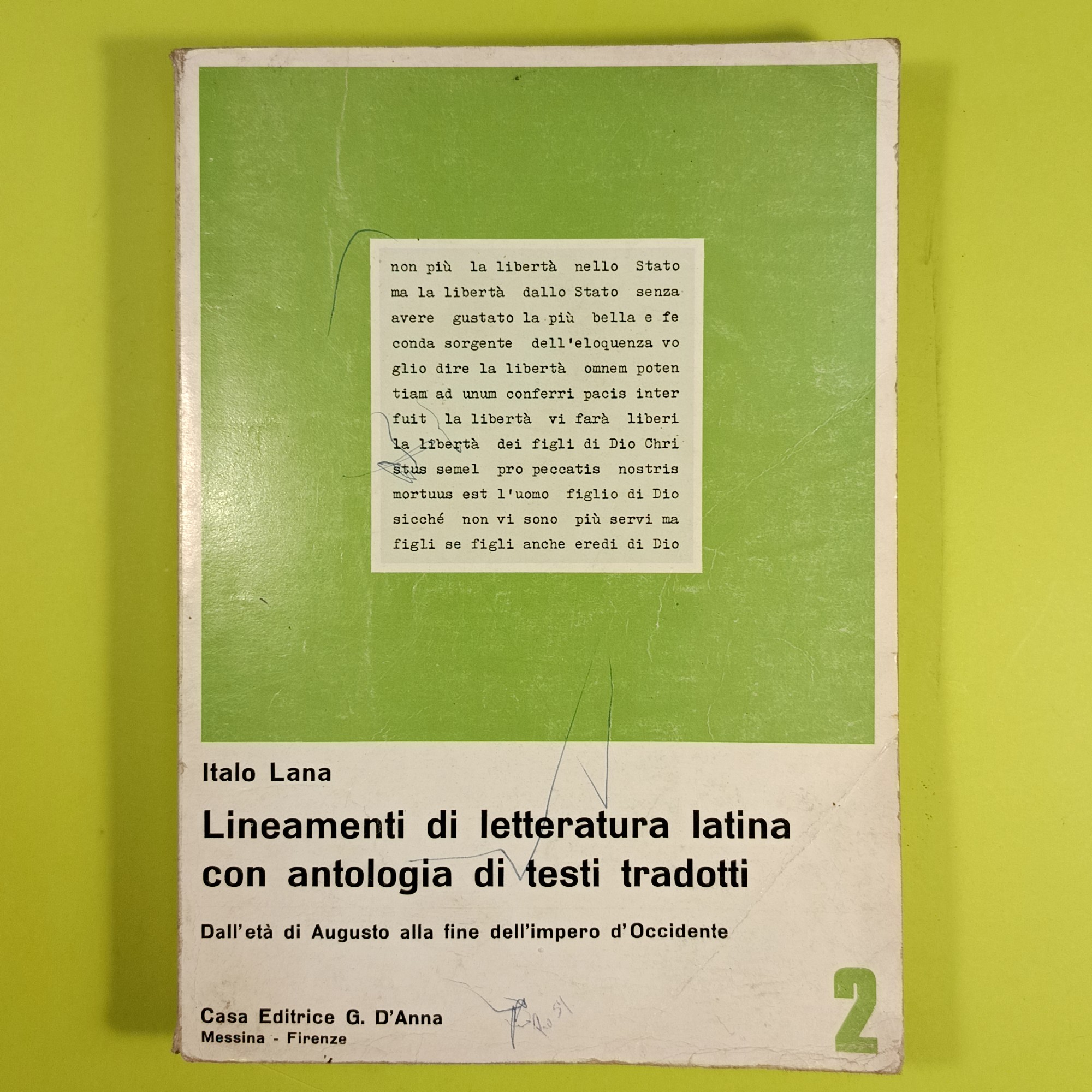 LINEAMENTI DI LETTERATURA LATINA CON ANTOLOGIA DI TESTI TRADOTTI VOL 2