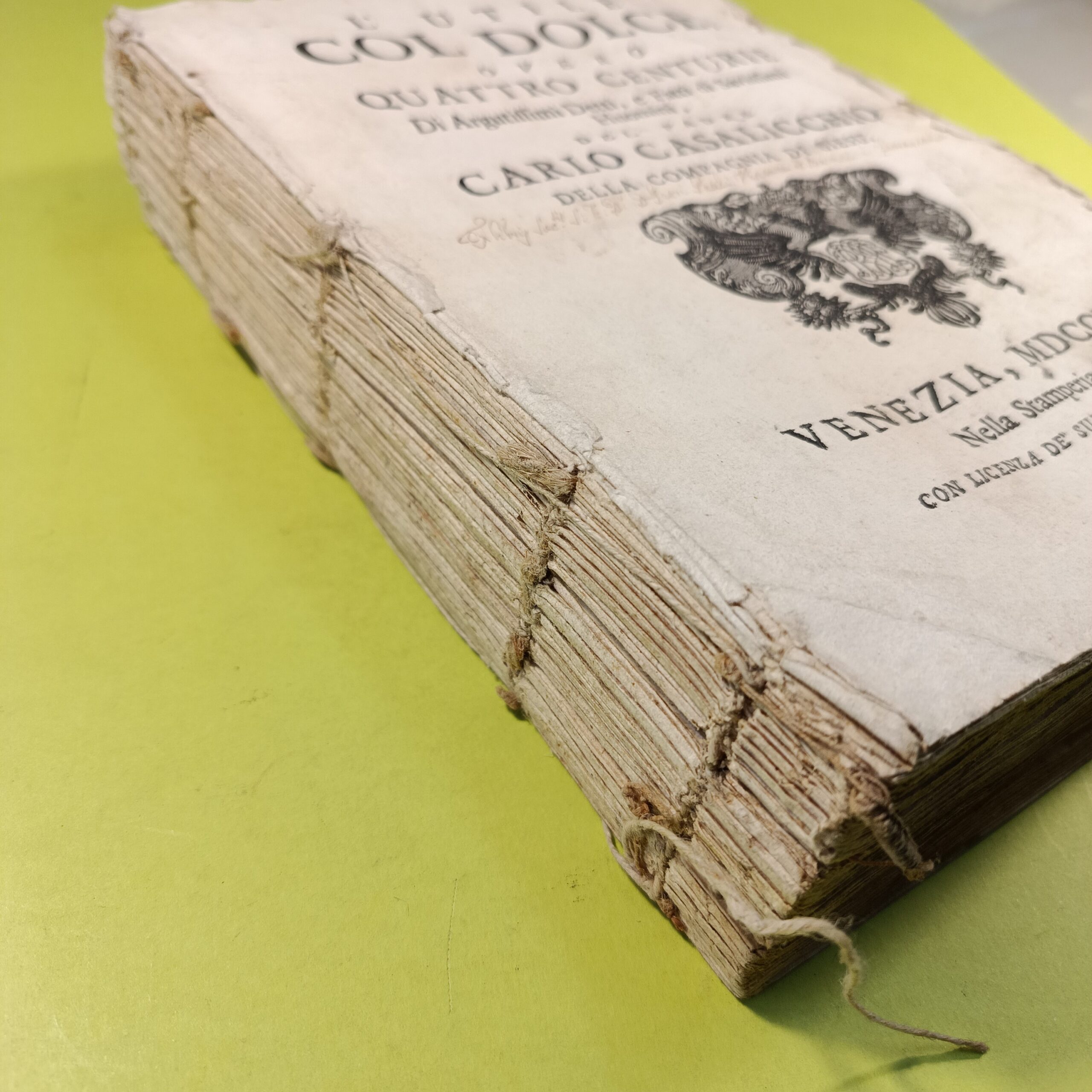 Condizioni: Discrete, Manca la copertina – La legatura delle pagine è allentata – Gallerie di tarli nelle prime pagine – scritta a inchiostro sulla prima pagina – Non sono presenti sottolineature o scritte – qualche macchia e fioritura