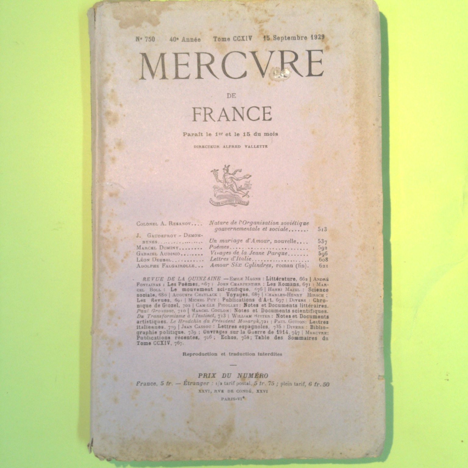 15 SEPTEMBRE 1929 N 750