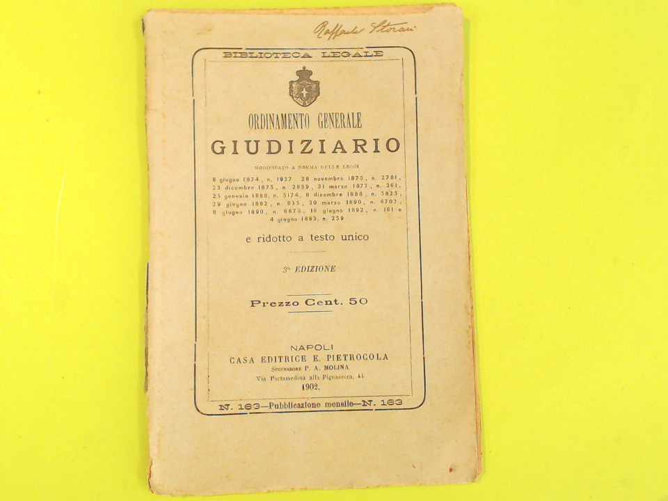 Condizioni: Discrete – Firma a inchiostro sulla copertina – Il dorso è lacerato – La legatura delle pagine è allentata – qualche segno a matita e con la matita blu