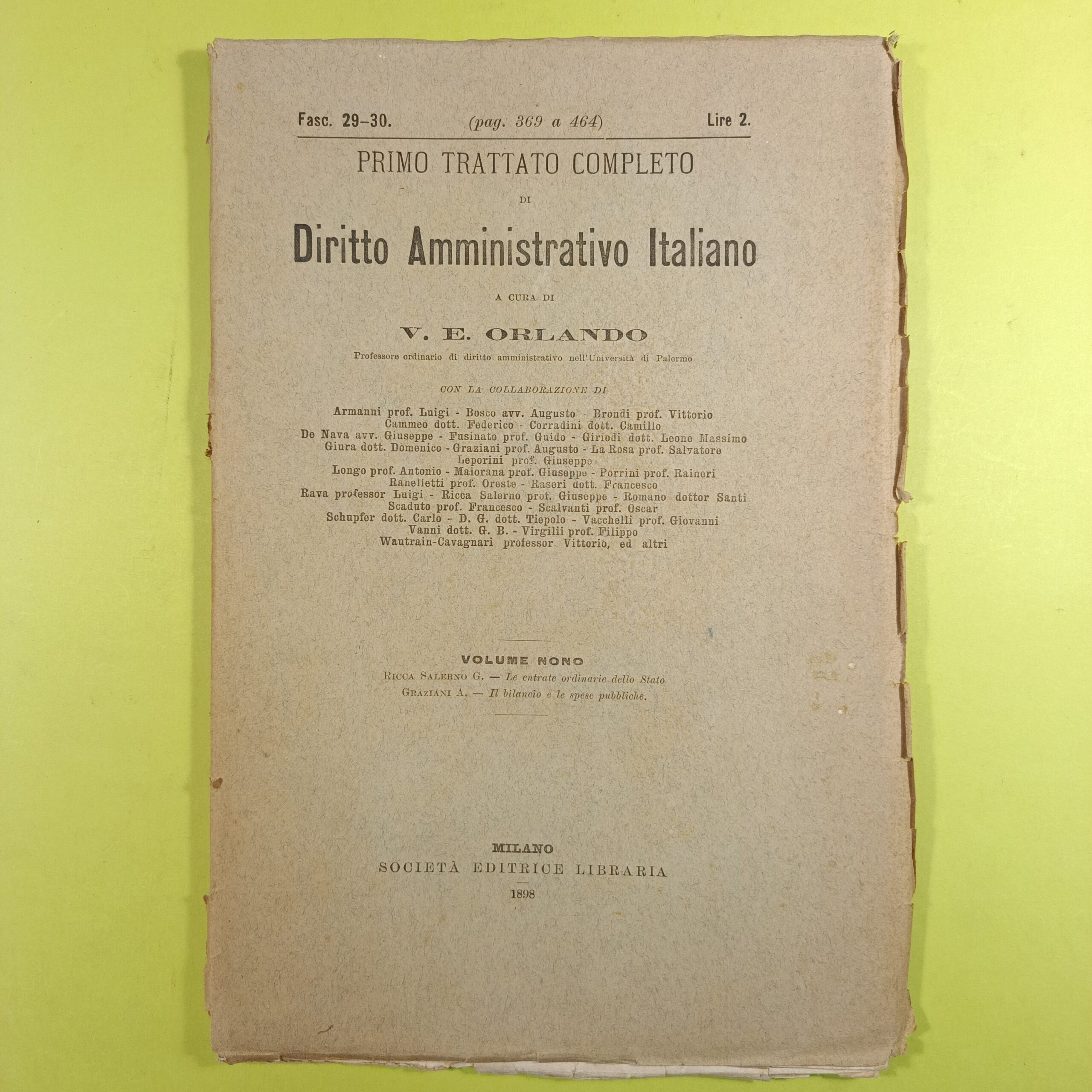 PRIMO TRATTATO DIRITTO AMMINISTRATIVO ITALIANO ORLANDO FASC 29-30 VOL IX