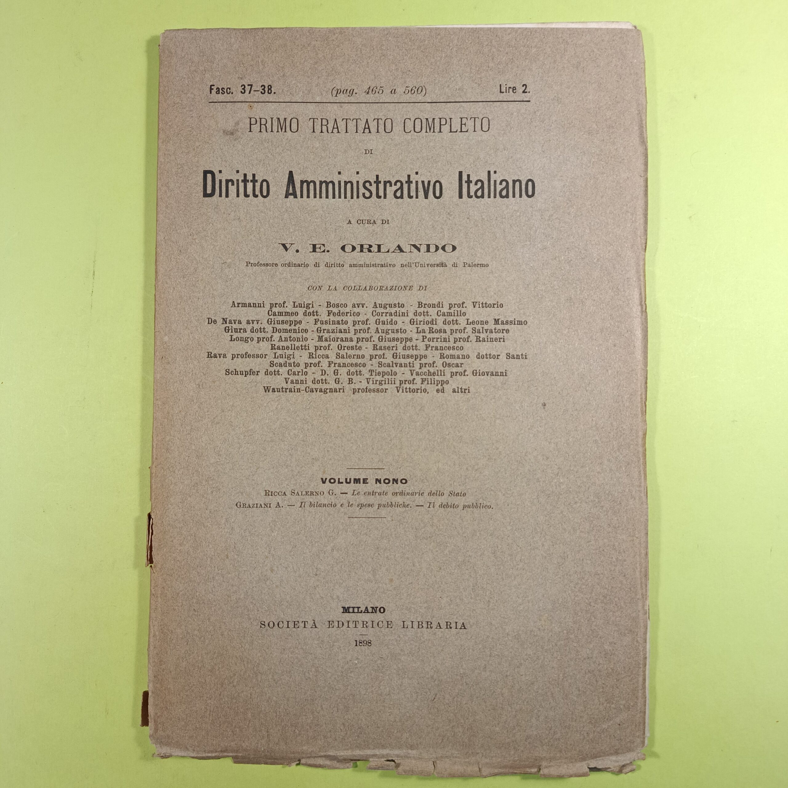 PRIMO TRATTATO DIRITTO AMMINISTRATIVO ITALIANO ORLANDO FASC. 37-38 VOL IX