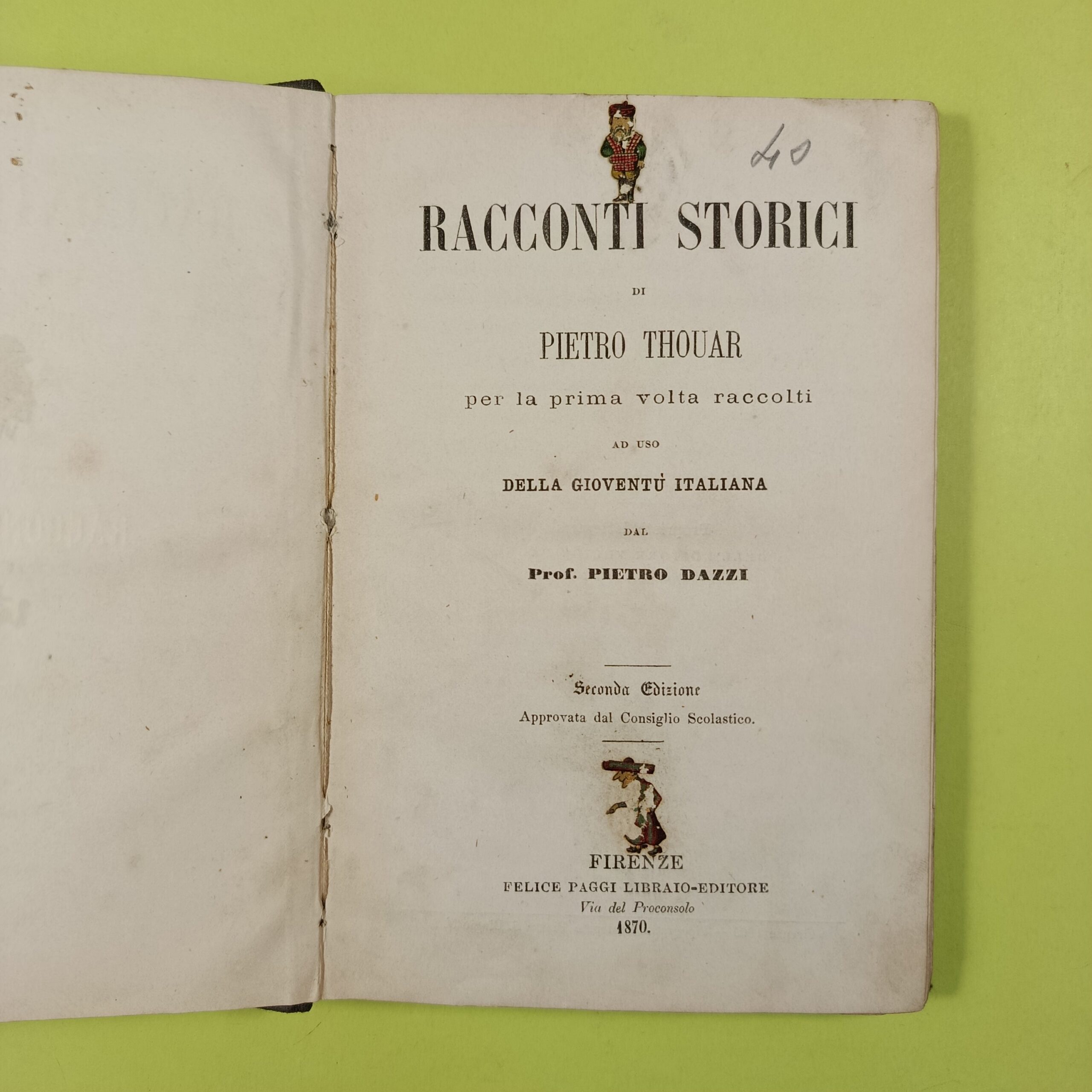 PER LA PRIMA VOLTA RACCOLTI AD USO DELLA GIOVENTU’ ITALIANA DAL PROF. PIETRO DAZZI
