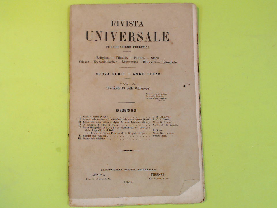 RIVISTA UNIVERSALE VOL X AGOSTO 1869 FASC. 79