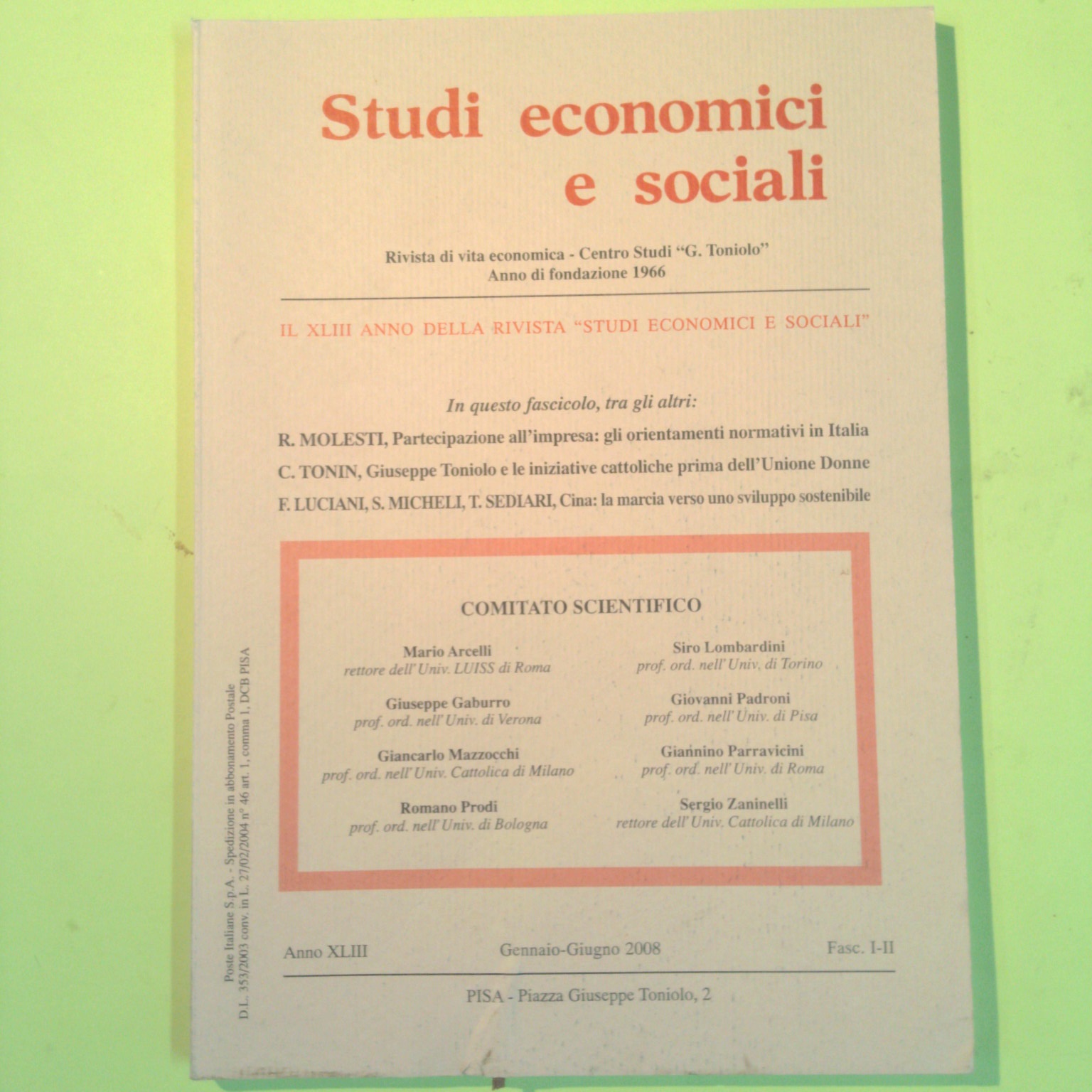STUDI ECONOMICI E SOCIALI GENNAIO GIUGNO 2008 FASC. I-II