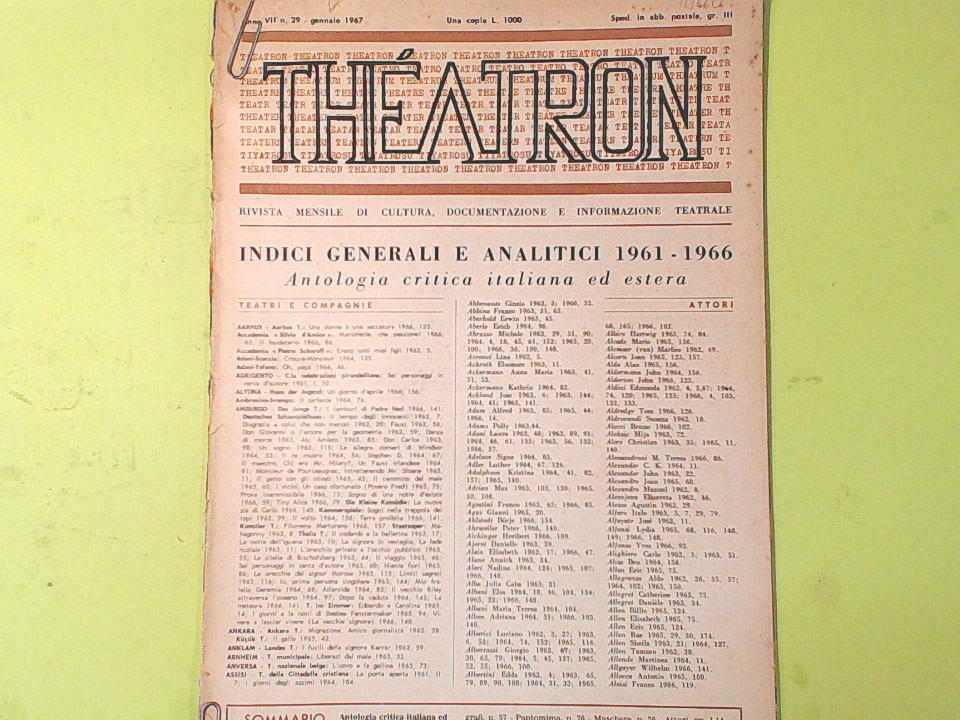 RIVISTA MENSILE DI CULTURA DOCUMENTAZIONE E INFORMAZIONE TEATRALE