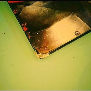 UNO STRAPPO SULLO SPIGOLO DELLA COPERTINA INFERIORE